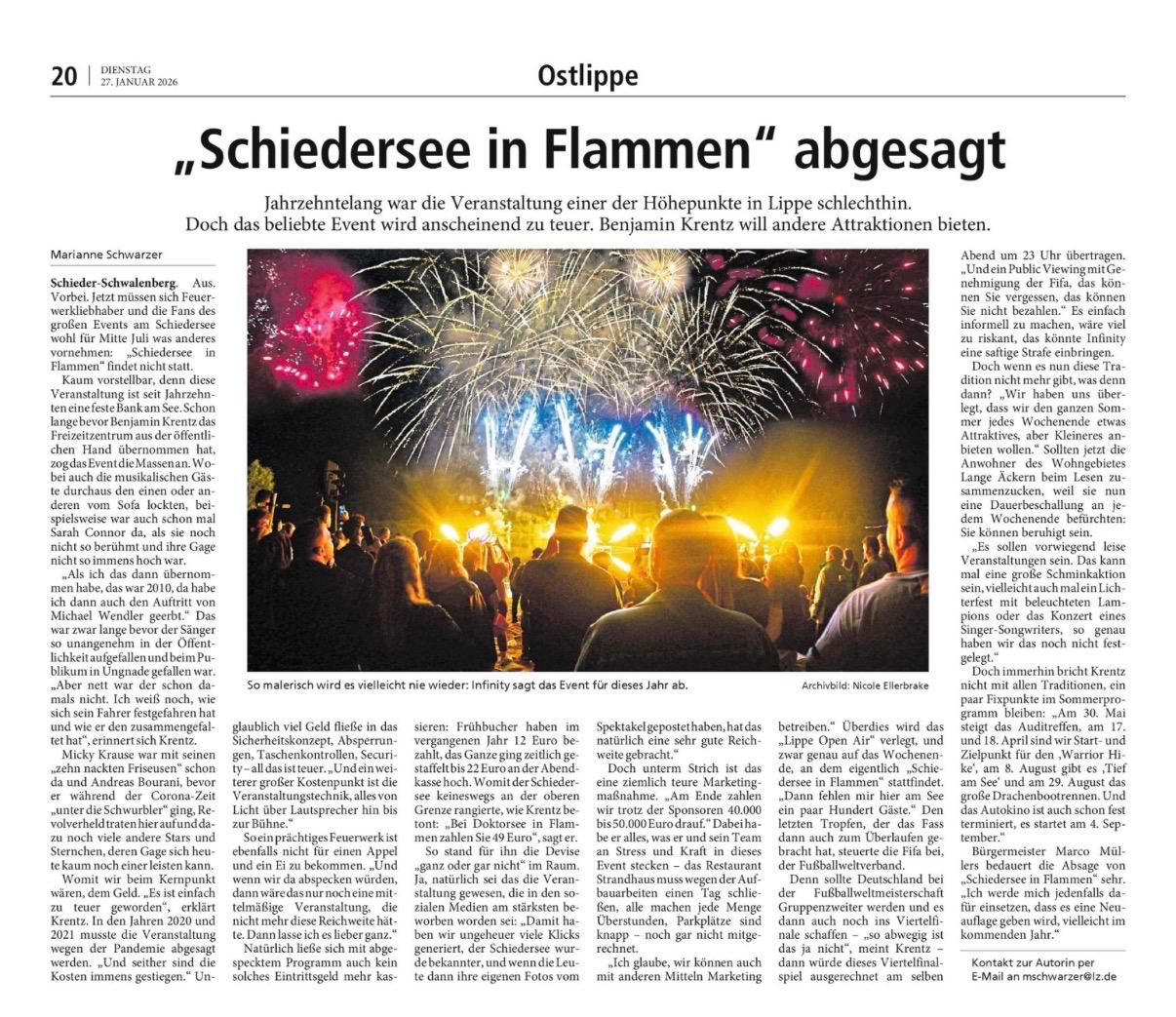 In diesem Jahr wird es kein SchiederSee in Flammen geben (weitere Infos).